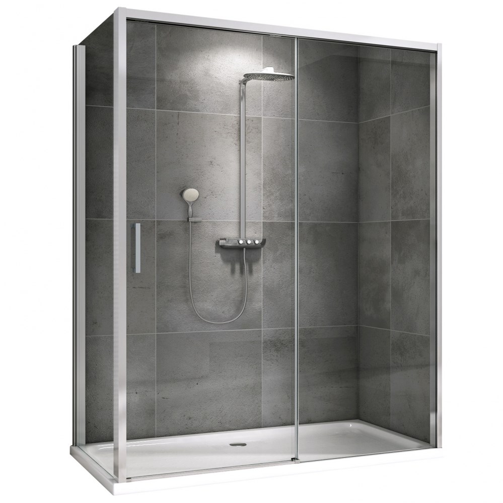 ABBER Komfort Душевой уголок прямоугольный двери раздвижные размер 140x100 см, профиль - хром / стекло - прозрачное