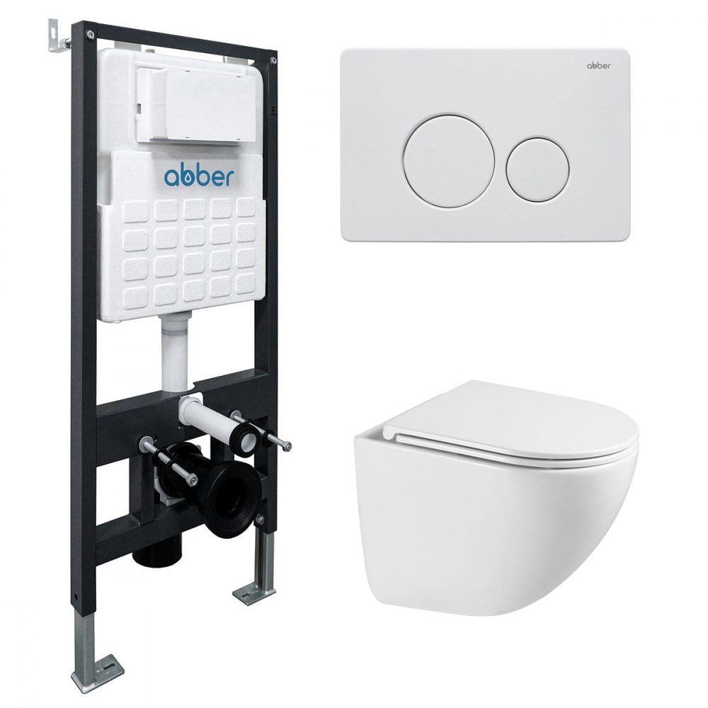 ABBER Комплект подвесной унитаз Bequem AC1131TC белый, с закрытым дном с инсталляцией AC0105 и кнопкой AC0121MW белая матовая