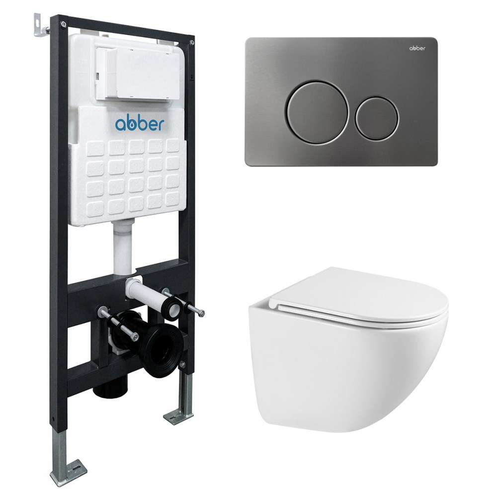 ABBER Комплект подвесной унитаз Bequem AC1131TC белый, с закрытым дном с инсталляцией AC0105 и кнопкой AC0121NG никель