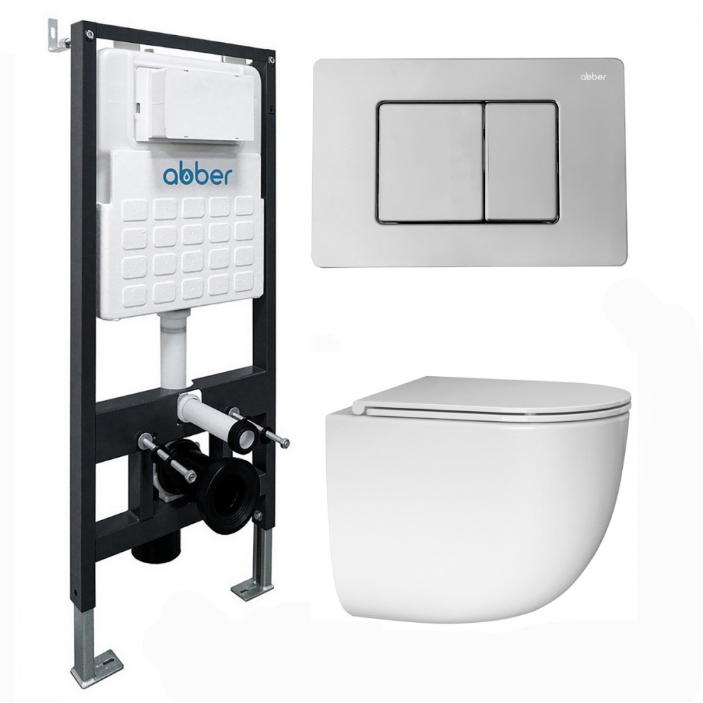 ABBER Комплект подвесной унитаз Bequem AC1132TC белый, с закрытым дном с инсталляцией AC0105 и кнопкой AC0120 хром глянцевый