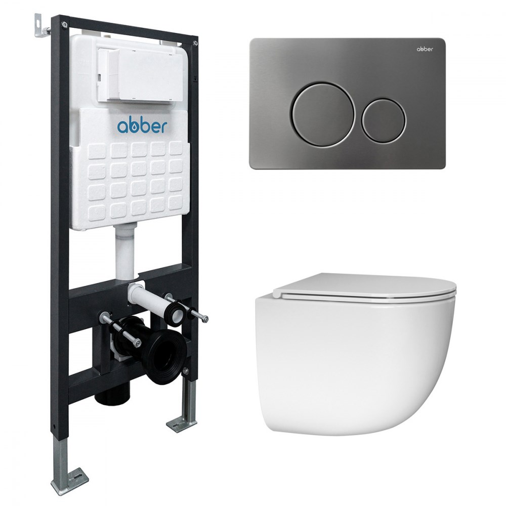 ABBER Комплект подвесной унитаз Bequem AC1132TC белый, с закрытым дном с инсталляцией AC0105 и кнопкой AC0121NG никель