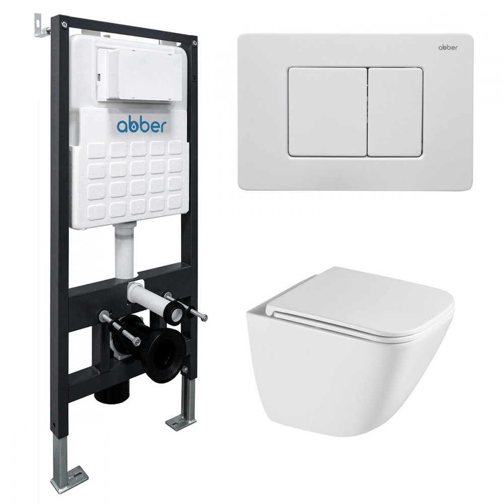 ABBER Комплект подвесной унитаз Rechteck AC1220TC белый, с закрытым дном с инсталляцией AC0105 и кнопкой AC0120MW белая матовая
