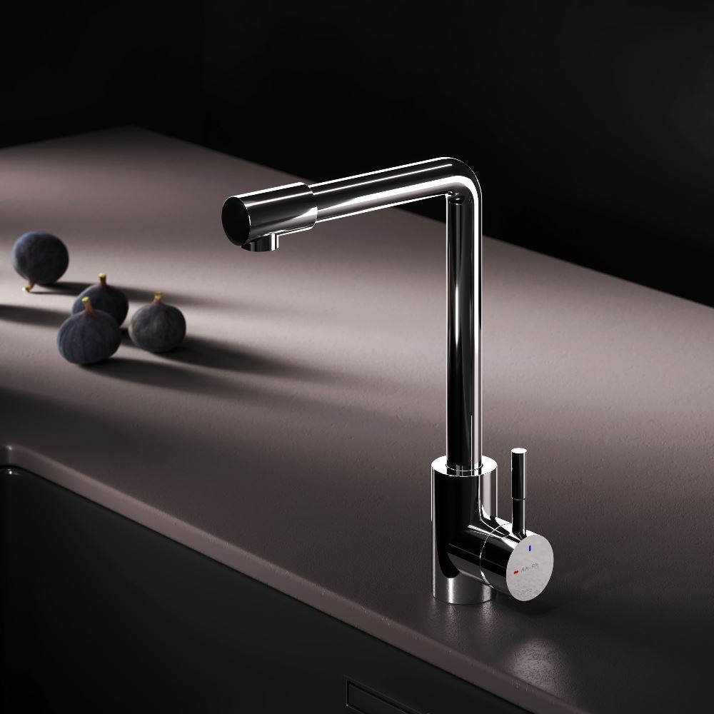 L-образная архитектура смесителя идеально подойдет для использования с мойкой любого размера и значительно упростит такие задачи как наполнение больших емкостей. ""