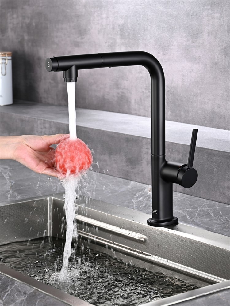 AQUAme AQM9903MB Cucina Смеситель для кухни с выдвижным L-образным изливом, с подключением к фильтру с питьевой водой, черный матовый