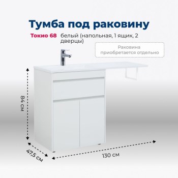 AQUANET Тумба под раковину напольная Токио 68 белый (напольная, 1 ящик, 2 дверцы)