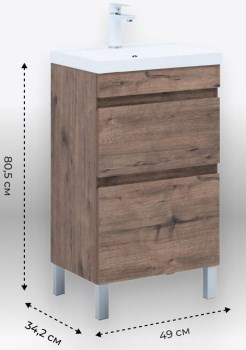 AQUANET Тумба с раковиной Нота New 50 напольная, дуб веллингтон табак