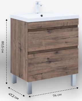 AQUANET Тумба с раковиной Нота New 75 напольная, дуб веллингтон табак