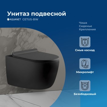 AQUANET Унитаз подвесной Rimless Cetus-BW BL-102N-WHT, черный