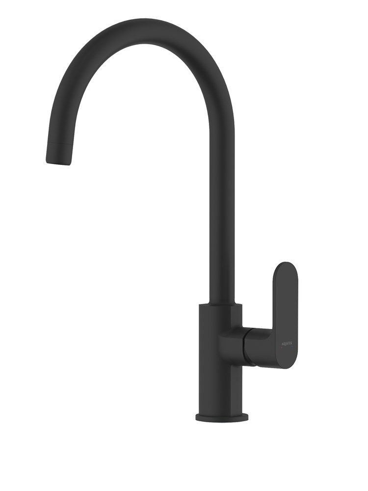 AQUATEK Alpha Смеситель для кухни (полукруглый излив), матовый черный
