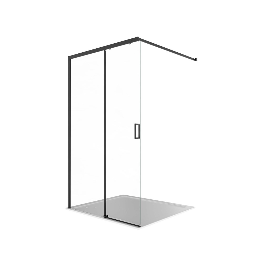 AQUATEK Душевая перегородка Walk In 120см, раздвижная, с держателем 1200мм, профиль черный матовый, стекло прозрачное, закаленное
