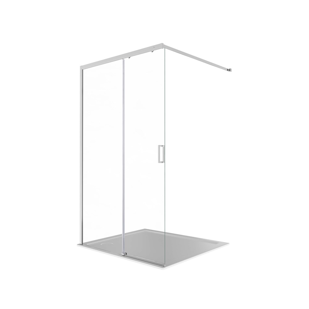 AQUATEK Душевая перегородка Walk In 120см, раздвижная, с держателем 1200мм, профиль хром, стекло прозрачное, закаленное