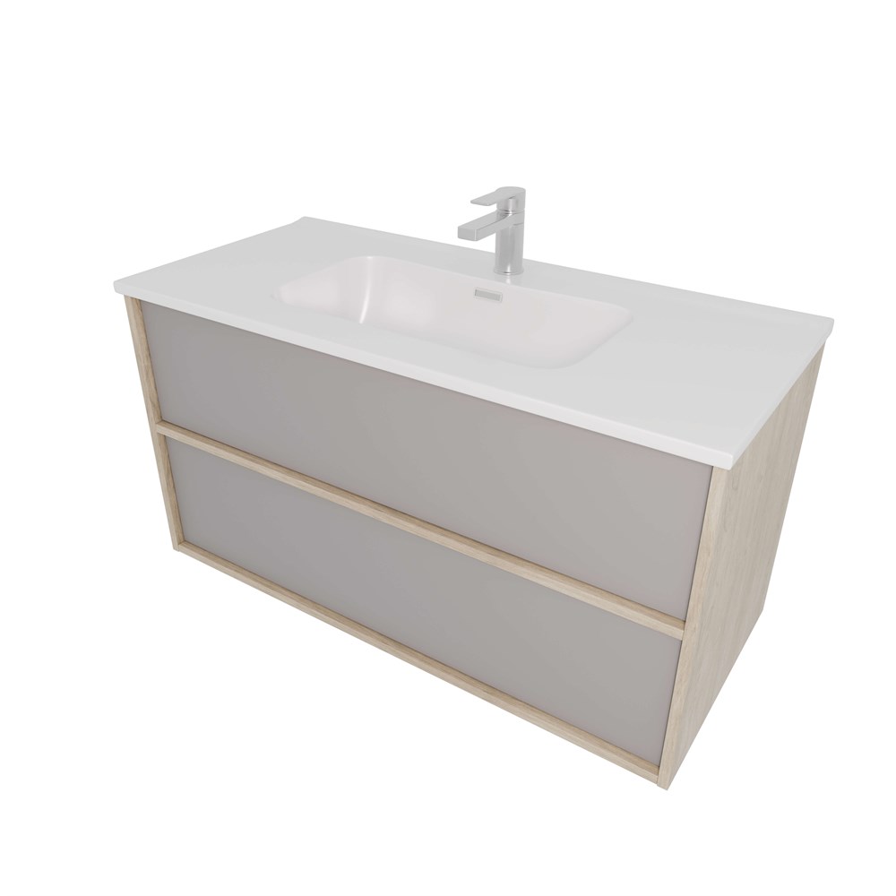 AQUATEK Комплект мебели: Тумба ЛИБРА с раковиной 100см, 2 ящика с системой push-to-open, корпус дерево,цвет фасадов серый туман