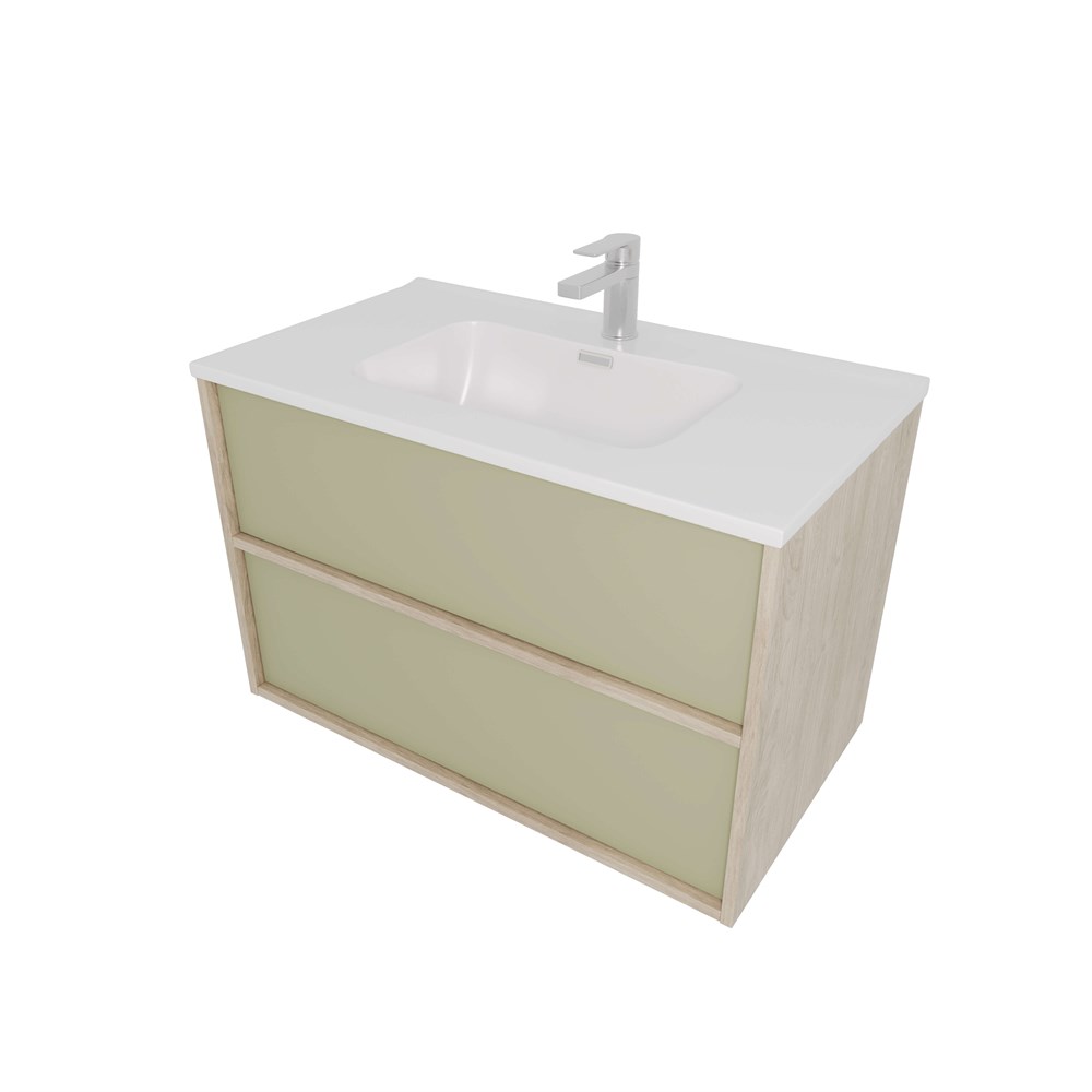 AQUATEK Комплект мебели: Тумба ЛИБРА с раковиной 80см, 2 ящика с системой push-to-open, корпус дерево,цвет фасадов шалфей зеленый