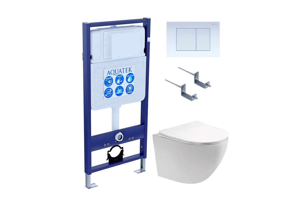 AQUATEK SET ЕВРОПА cm-009 4в1 (рама Standard INS-0000012+крепеж KKI-0000002+клавиша KDI-0000009+унитаз ЕВРОПА AQ1900-00 с тонким сиденьем sc)