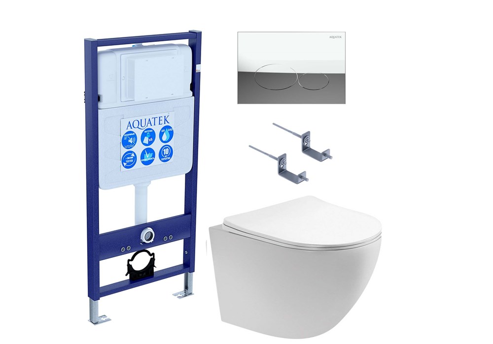 AQUATEK SET ЕВРОПА T-17-KDI72 (рама INS-0000017 +клавиша KDI-0000072 +крепеж KKI-0000002 +унитаз ЕВРОПА AQ1900T-00 с тонким сиденьем sc)