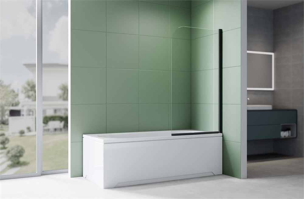 AQUATEK Шторка на ванну стеклянная 80см, одноэлементная, поворотная, черная матовая, стекло прозрачное, закаленное