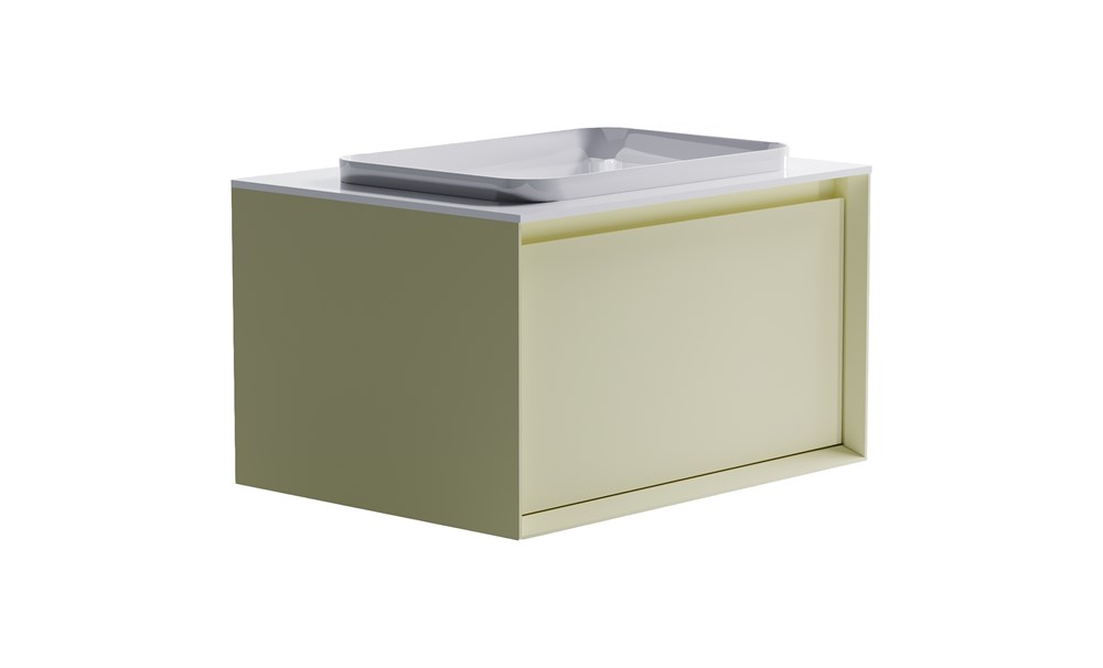 ASTRA-FORM Тумба подвесная Фрейм 70 с 1ящ RAL1013 мат. с раковиной Антарес бел гл. и столешницей Solid бел гл.