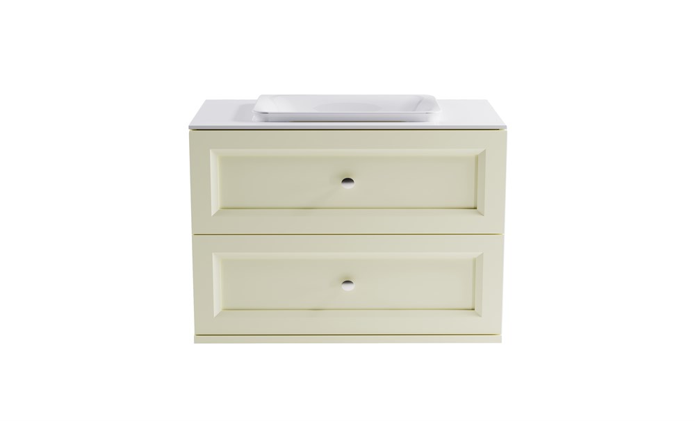 ASTRA-FORM Тумба подвесная Классик 90 с 2ящ RAL1013 мат. с раковиной Ретро бел гл. и столешницей Solid бел гл.