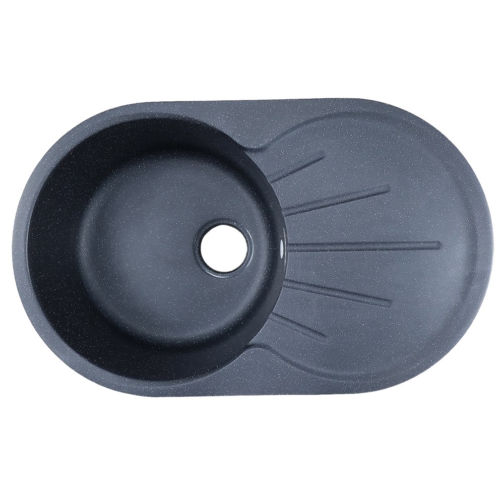 AZARIO Кухонная мойка Perla 730x450x190 искусственный мрамор, с "крылом", сифон в комплекте, цвет черный (CS00105242)