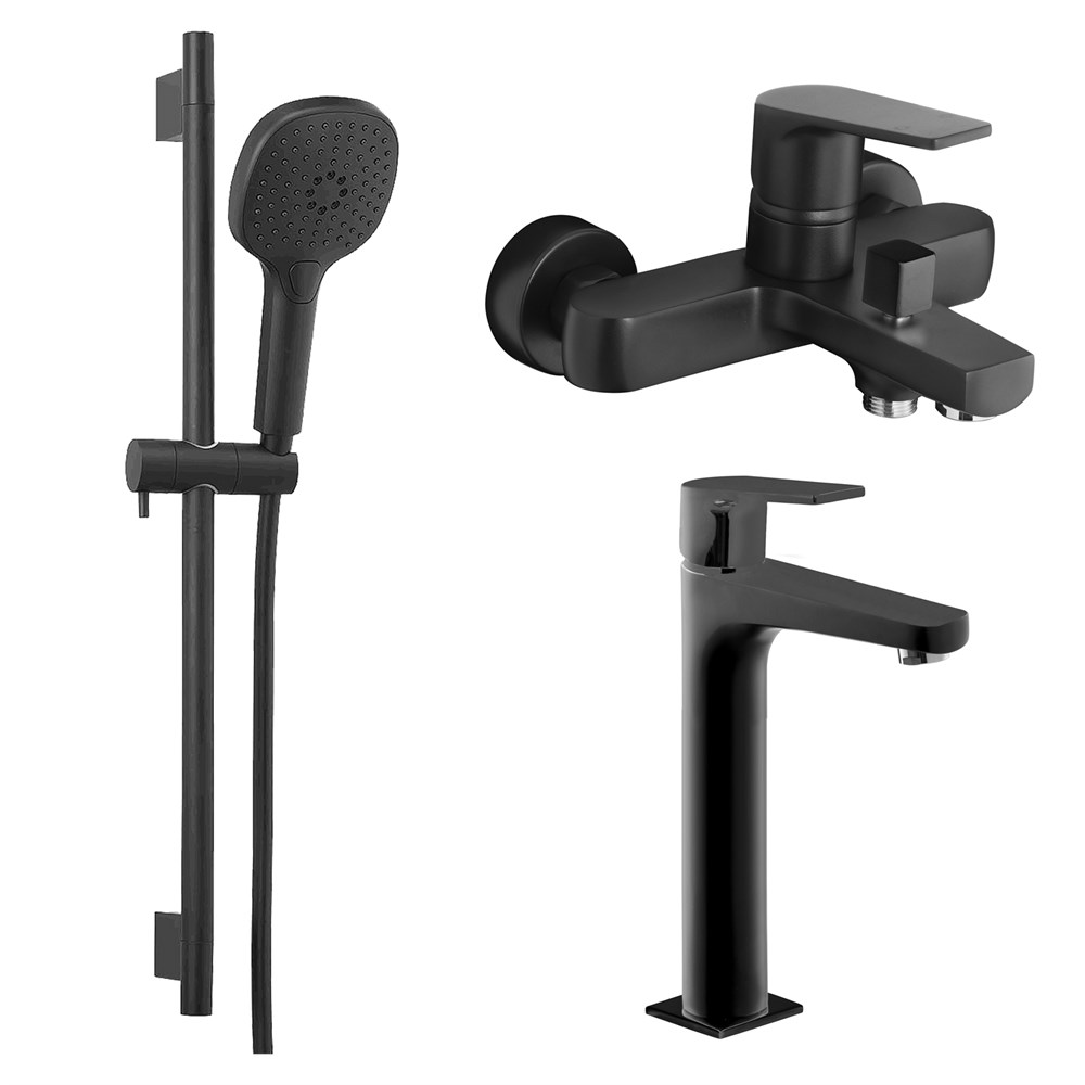 AZARIO Набор смесителей 3 в 1 для ванны TREYA, черный матовый (AZ-156805024+AZ-156845524+AZ-157820224)