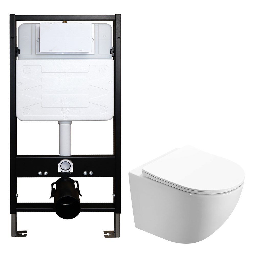 AZARIO Сет: Инсталляция для подвесного унитаза AZARIO FORTE + подвесной унитаз Azario Trevi смыв "Скрытое торнадо" сиденье микролифт (AZ-100-100F+AZ-0093UQ3)