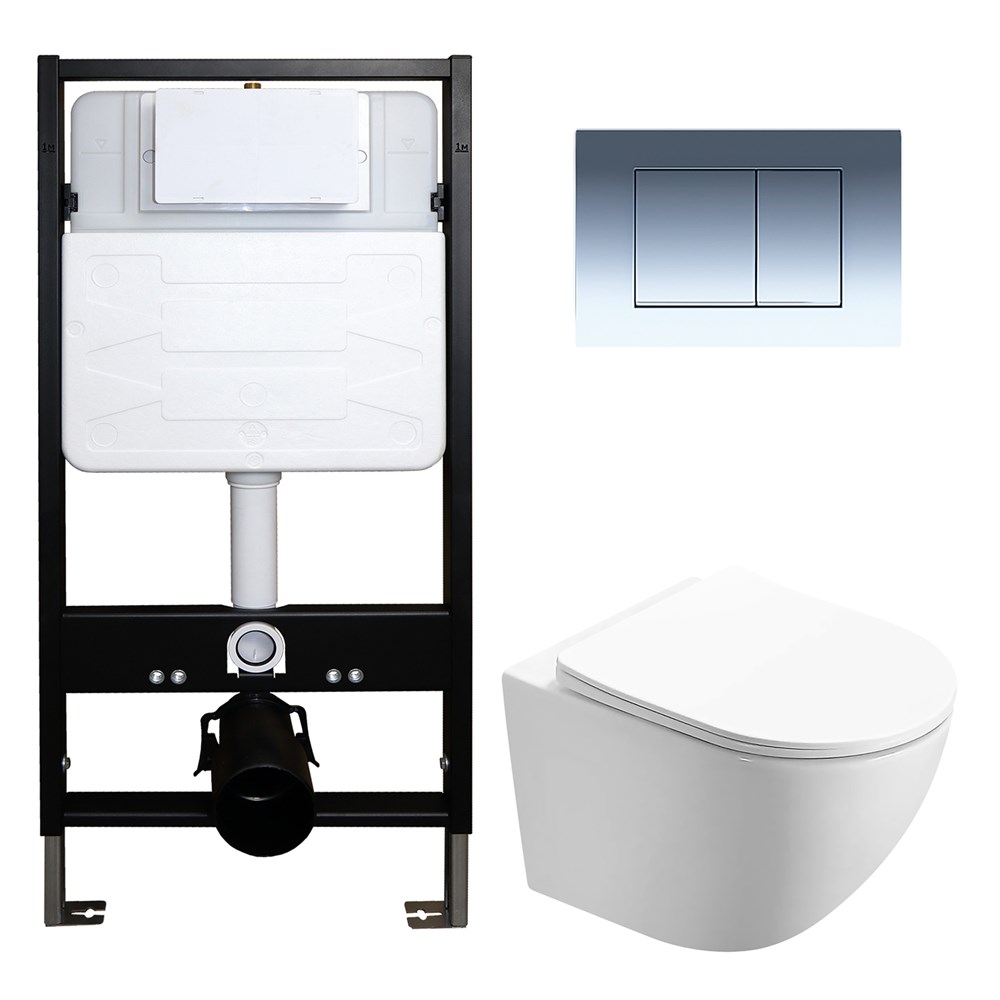 AZARIO Сет: Инсталляция для подвесного унитаза AZARIO FORTE + подвесной унитаз Azario Trevi смыв "Скрытое торнадо" сиденье микролифт + Кнопка смыва AZARIO FORTE хром глянцевый (AZ-100-100F+AZ-0093UQ3+AZ-100-020F)
