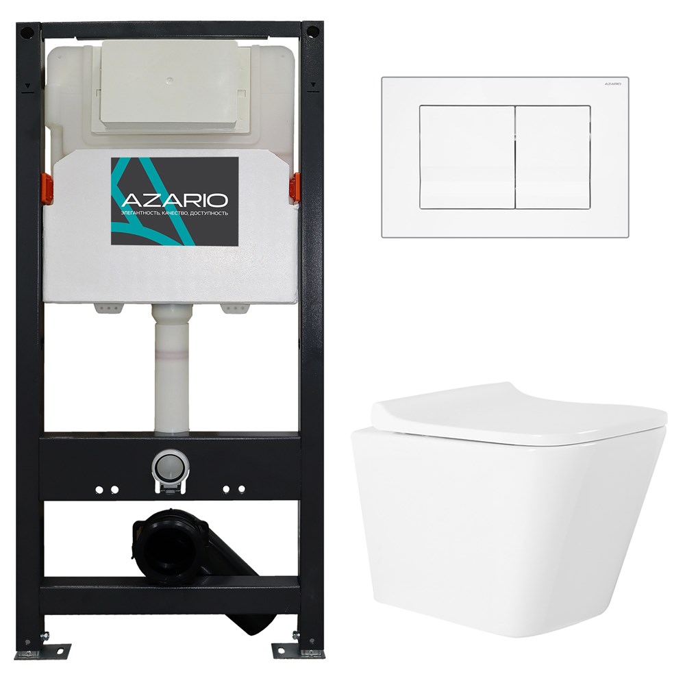 AZARIO Сет: Инсталляция для подвесного унитаза NEW 3/6л + Унитаз подвесной Teramo, с сиденьем микролифт + Клавиша смыва, глянцево-белая (AZ-501A+AZ-0052+AZ-001.01)