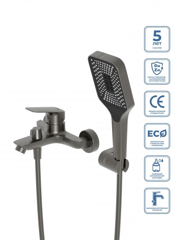 👍 Смеситель для ванны и душа оснащен функциональной душевой лейкой и шлангом для еще более практичного использования.