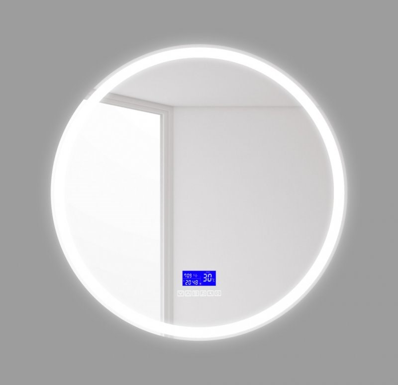 Оснащено сенсорным выключателем на полотне зеркала со встроенным ЖК дисплеем(индикация дата/время,температура).