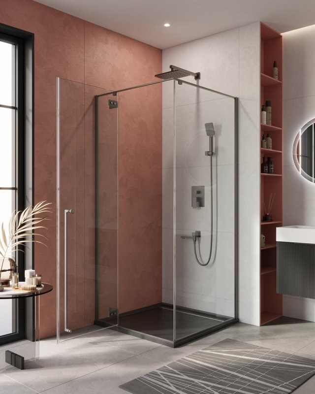 CEZARES Liner Душевой уголок квадратный размер 90x90 см двери распашные профиль - оружейная сталь / стекло - прозрачное