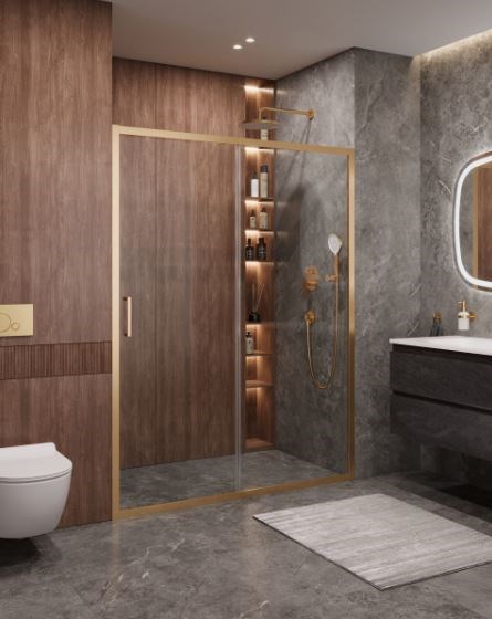 CEZARES Molveno Душевая дверь в нишу раздвижная ширина 140 см профиль - брашированное золото / стекло - прозрачное