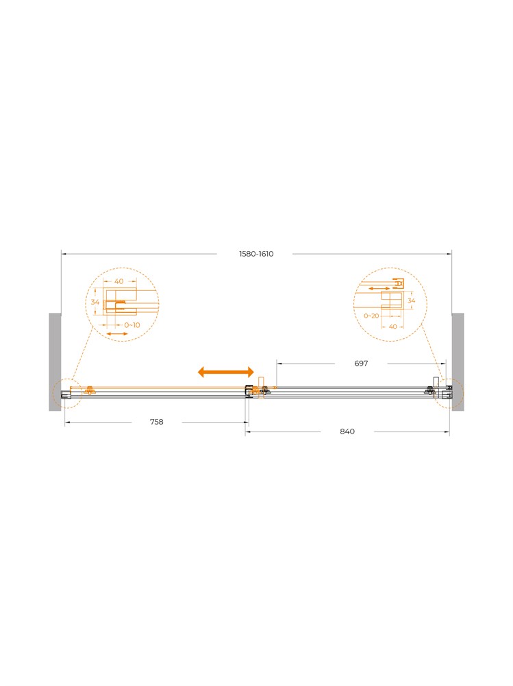 CEZARES Plane Душевая дверь в нишу раздвижная профиль - сатин / стекло - прозрачное, ширина 160 см