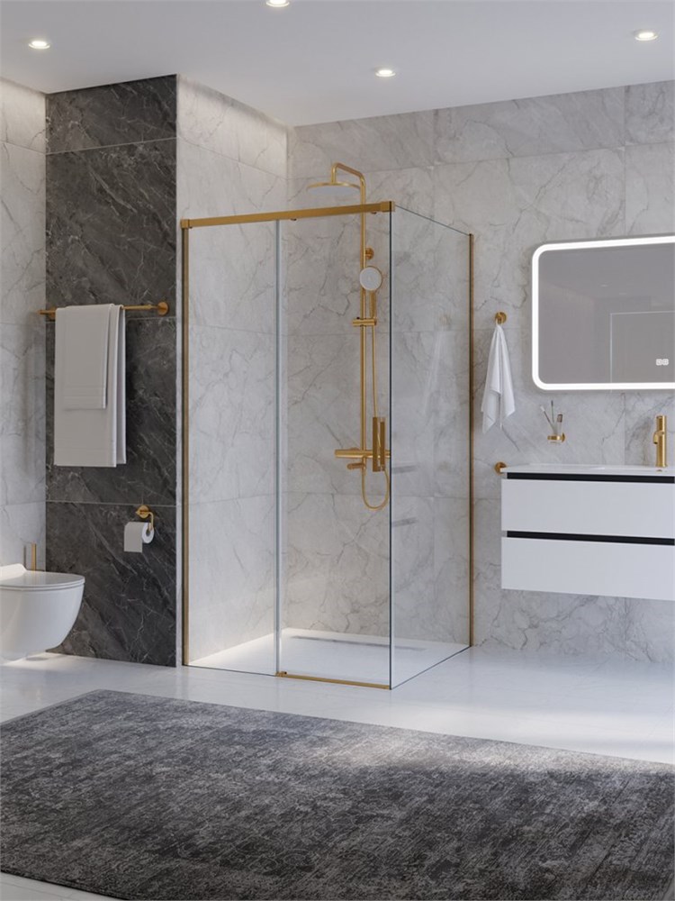 CEZARES Plane Душевой уголок квадратный двери раздвижные размер 100x100 см, профиль - брашированное золото / стекло - прозрачное