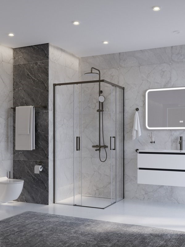 CEZARES Plane Душевой уголок квадратный двери раздвижные размер 100x100 см, профиль - оружейная сталь / стекло - прозрачное