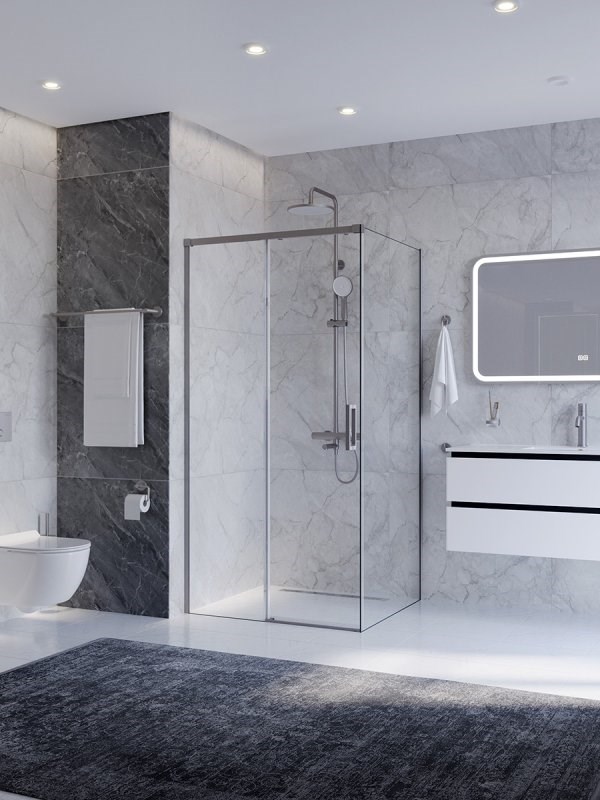 CEZARES Plane Душевой уголок прямоугольный двери раздвижные размер 120x80 см, профиль - сатин / стекло - прозрачное