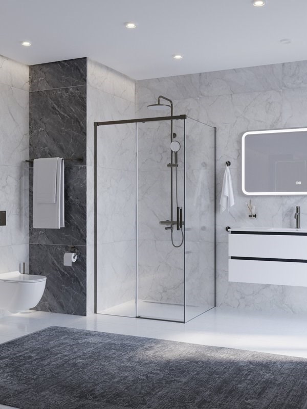 CEZARES Plane Душевой уголок прямоугольный двери раздвижные размер 130x100 см, профиль - оружейная сталь / стекло - прозрачное