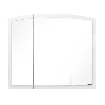 Зеркальное высококачественное полотно с амальгамой на основе серебра. Все три зеркальные створки оснащены петлями с плавным закрыванием. За малыми створками по две полки, за большой - одна горизонтальная полка.
