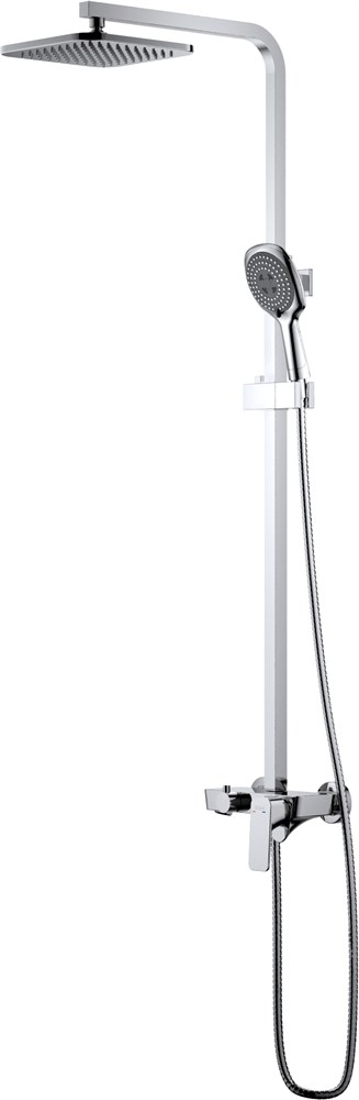 ОснащениеСмеситель, эксцентрики-2шт, декоративная шайба (отражатель)-2шт, штанга, крепление для штанги, кронштейн для верхнего душа, шланг душевой, лейка душевая, держатель душевой лейки, паспорт