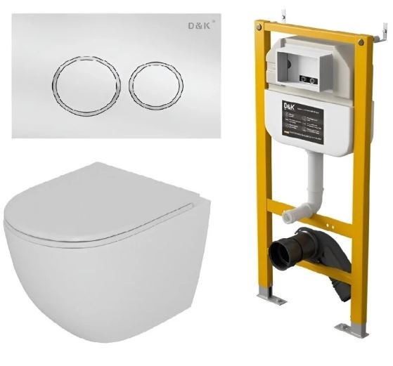 DK Комплект Унитаз подвесной безободковый D&K Matrix DT1396016+Инсталляция рамная скрытого монтажа D&K DI8050127, 500*117*1270мм, для подвесного унитаза+Клавиша смыва D&K Bayern DB1529016, белый