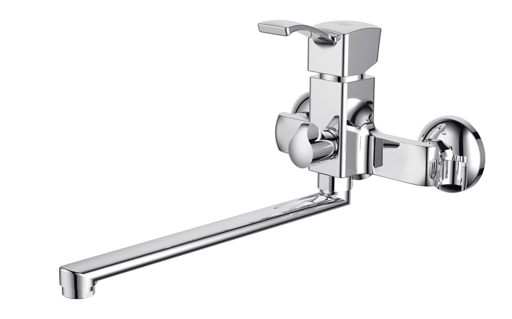 ОснащениеСмеситель, эксцентрики-2шт, декоративная шайба (отражатель)-2шт, шланг душевой, излив, лейка душевая-3 режима, держатель душевой лейки, паспорт, брендовая сумка