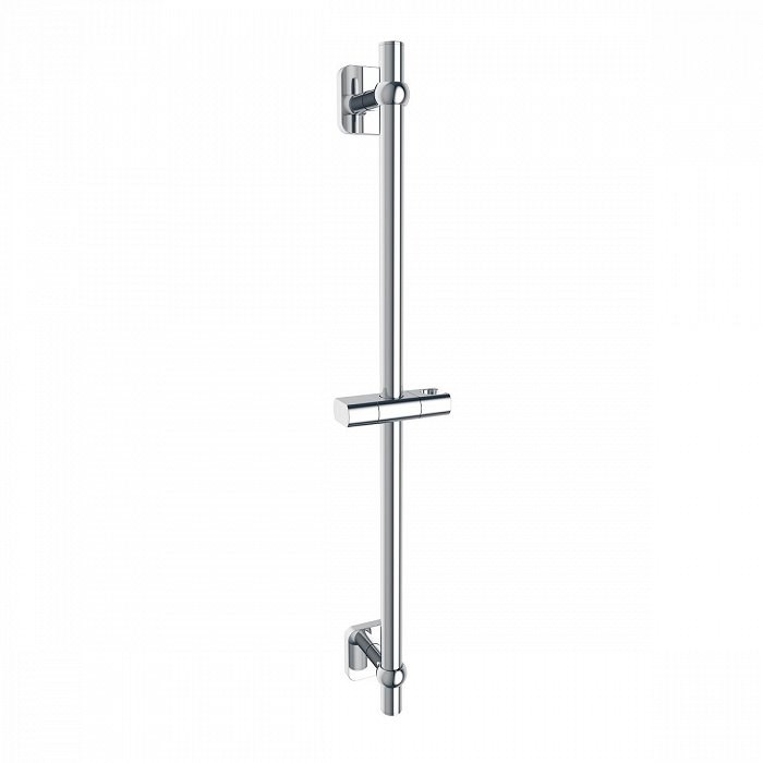 Стойка для душа, хром, нержавеющая сталь с никель-хромовым покрытием, высота 700 мм, диаметр 22 мм. Оба крепления свободные. Держатель лейки из ABS-пластика, поворотное крепление, регулировка наклона лейки. Крепеж в комплекте.