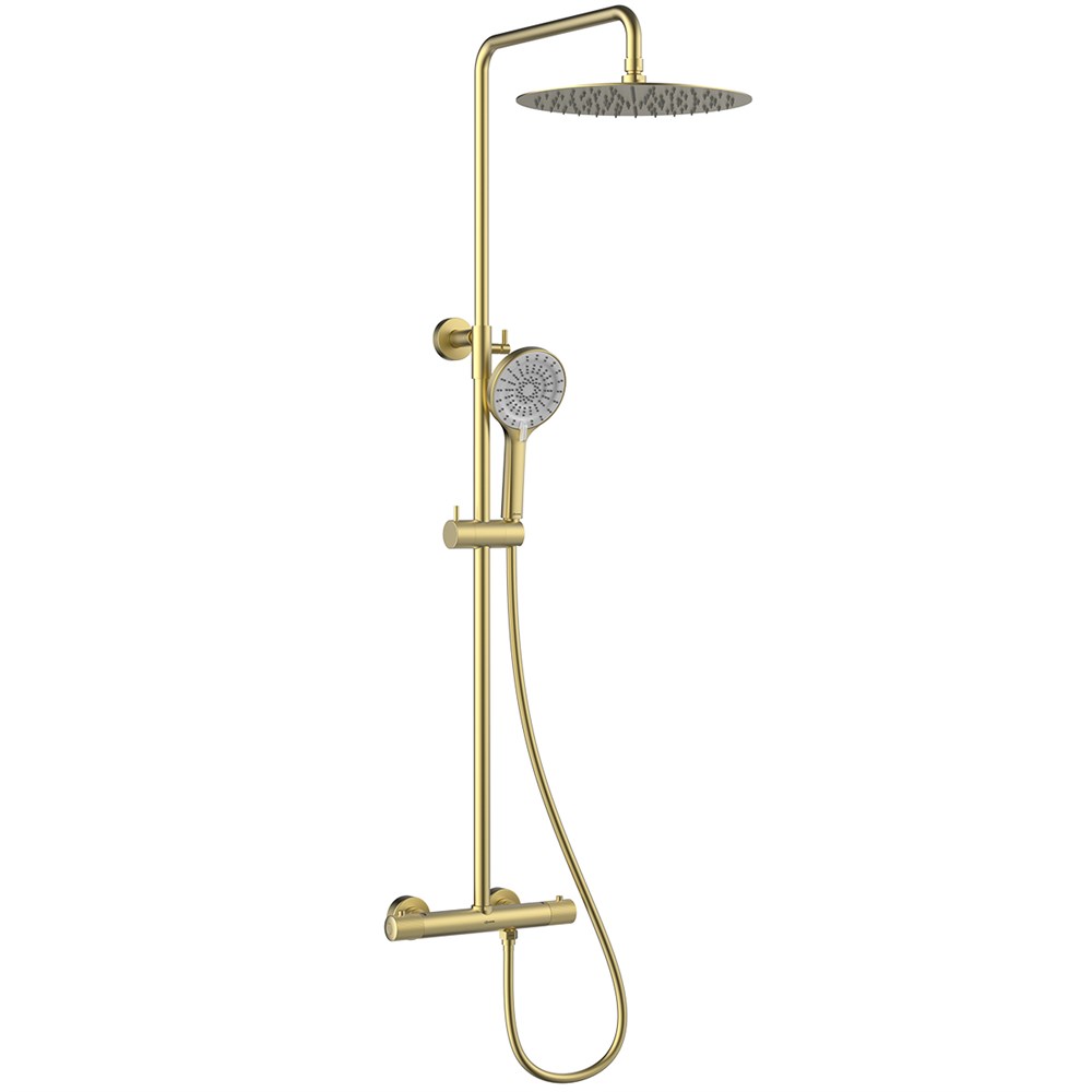 LEMARK Смеситель Beluga LMF-8045B-BRLG для душа с регулируемой высотой штанги и лейкой верхнего душа «Тропический дождь», термостатический, золото