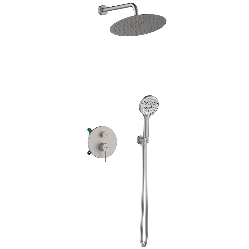 КомплектацияКорпус смесителя с картриджем с керамическими пластинами и переключателем-дивертором с керамическими пластинами, рукоятка картриджа, рукоятка переключателя-дивертора, держатель лейки верхнего душа, лейка верхнего душа "Тропический дождь", 3-функциональная душевая лейка, душевой шланг 1,5 м, присоединительная группа для настенного крепления