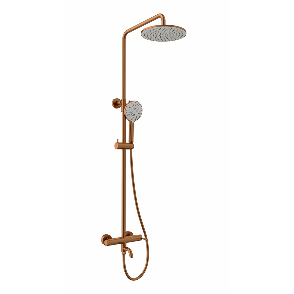 LEMARK Смеситель Kalina LMF-2126S-BRRG для ванны и душа с регулируемой высотой штанги и лейкой верхнего душа «Тропический дождь», брашированное розовое золото