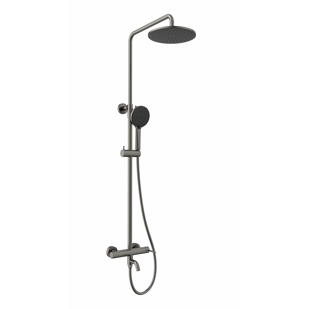 LEMARK Смеситель Kalina LMF-2126S-GM для ванны и душа с регулируемой высотой штанги и лейкой верхнего душа «Тропический дождь», графит