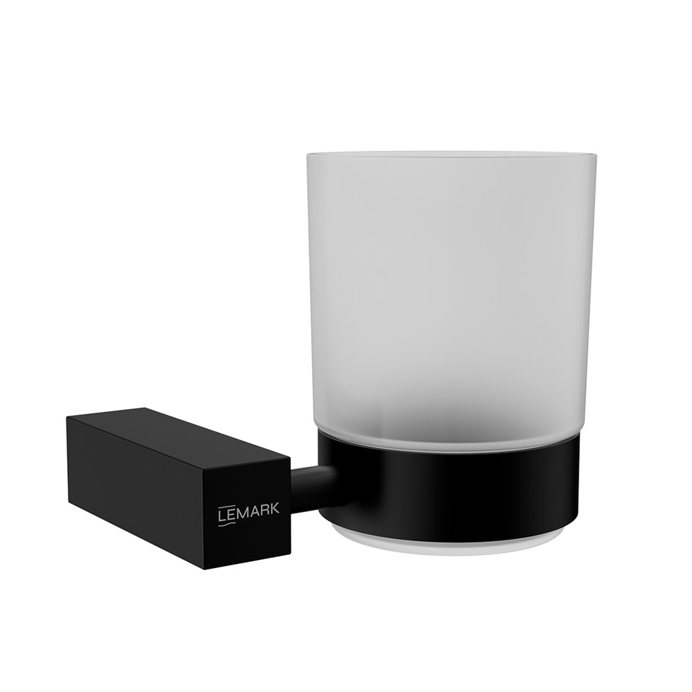 LEMARK Стакан для ванной VALDAY подвесной, сталь, стекло, матовый черный