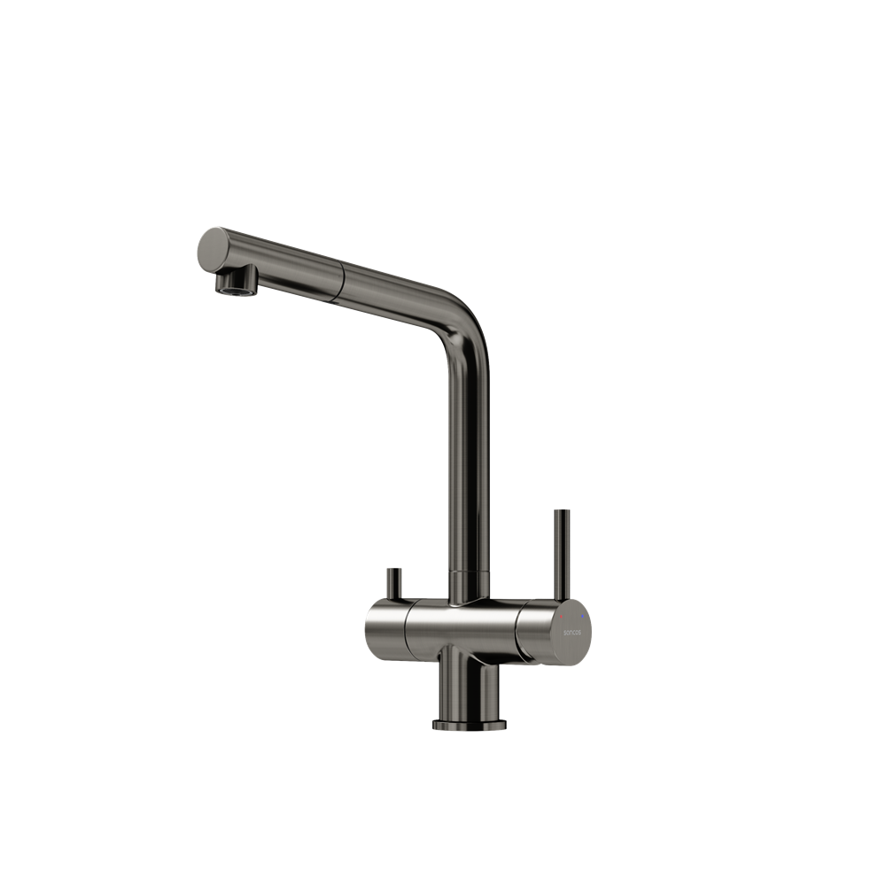 SANCOS Смеситель для кухни Spin с поворотным и вытяжным изливом, c краном для фильтрованной воды, цвет вороненая сталь, арт. SC4015GG