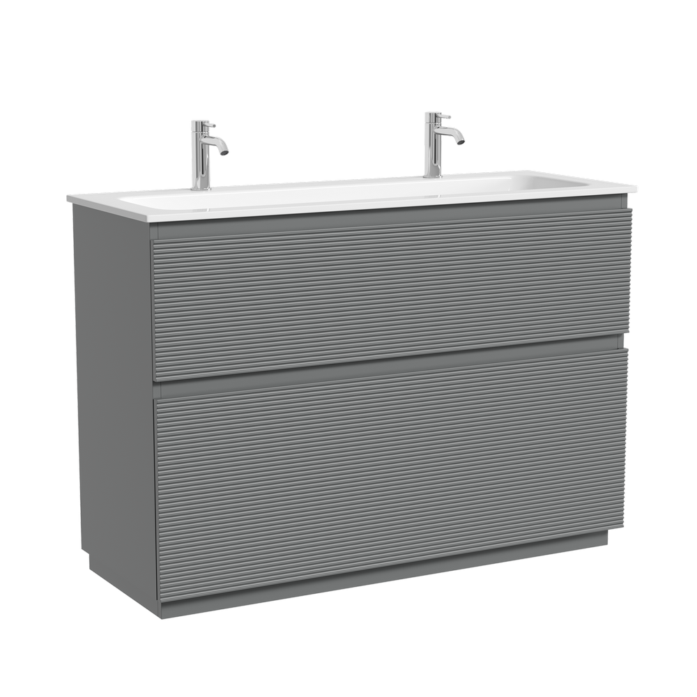 SANCOS Тумба напольная с рельефным фасадом Folk Floor 1190х445х850, c двумя ящиками оснащенными доводчиками скрытого монтажа с системой плавного закрывания, цвет Ergraut soft, арт.FL120FES
