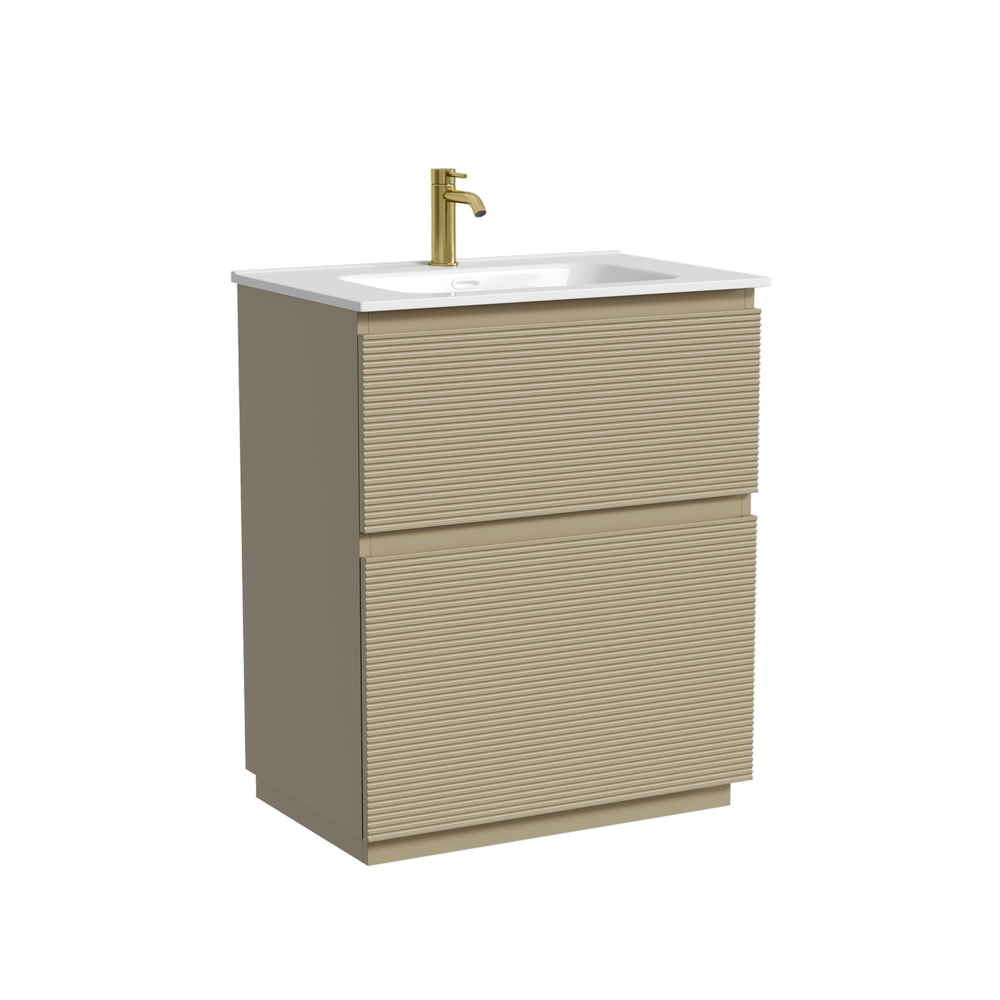 SANCOS Тумба напольная с рельефным фасадом Folk Floor 690х445х850, c двумя ящиками оснащенными доводчиками скрытого монтажа с системой плавного закрывания, цвет Капучино, арт.FL70FCP
