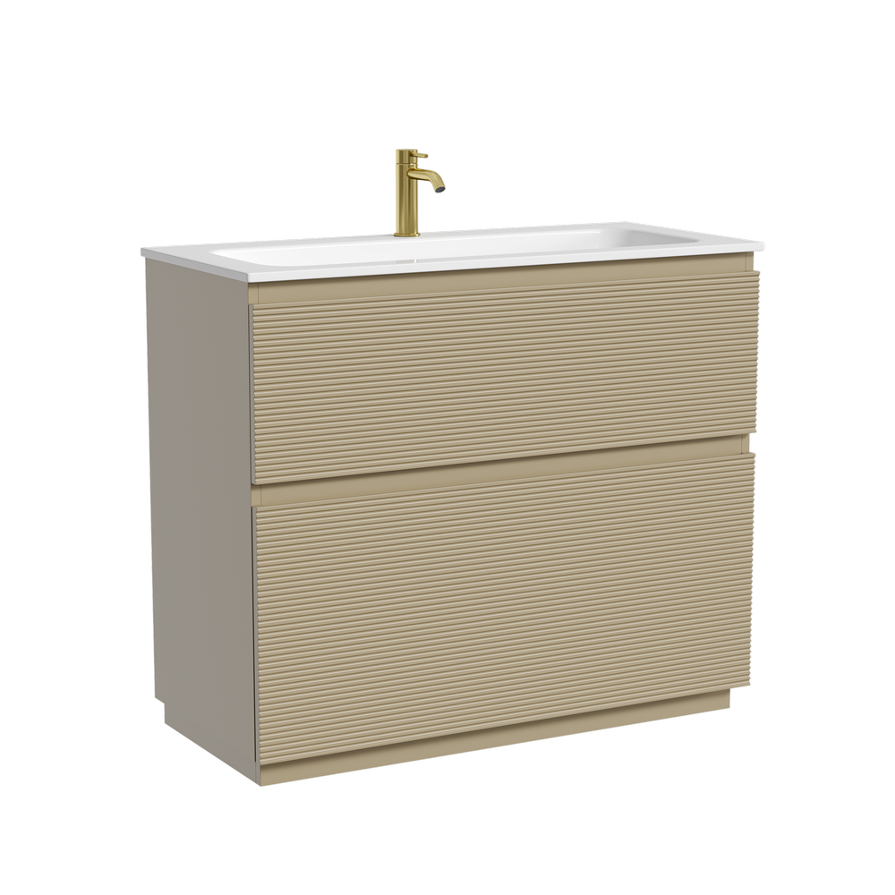 SANCOS Тумба напольная с рельефным фасадом Folk Floor 995х445х850, c двумя ящиками оснащенными доводчиками скрытого монтажа с системой плавного закрывания, цвет Капучино, арт.FL100FCP